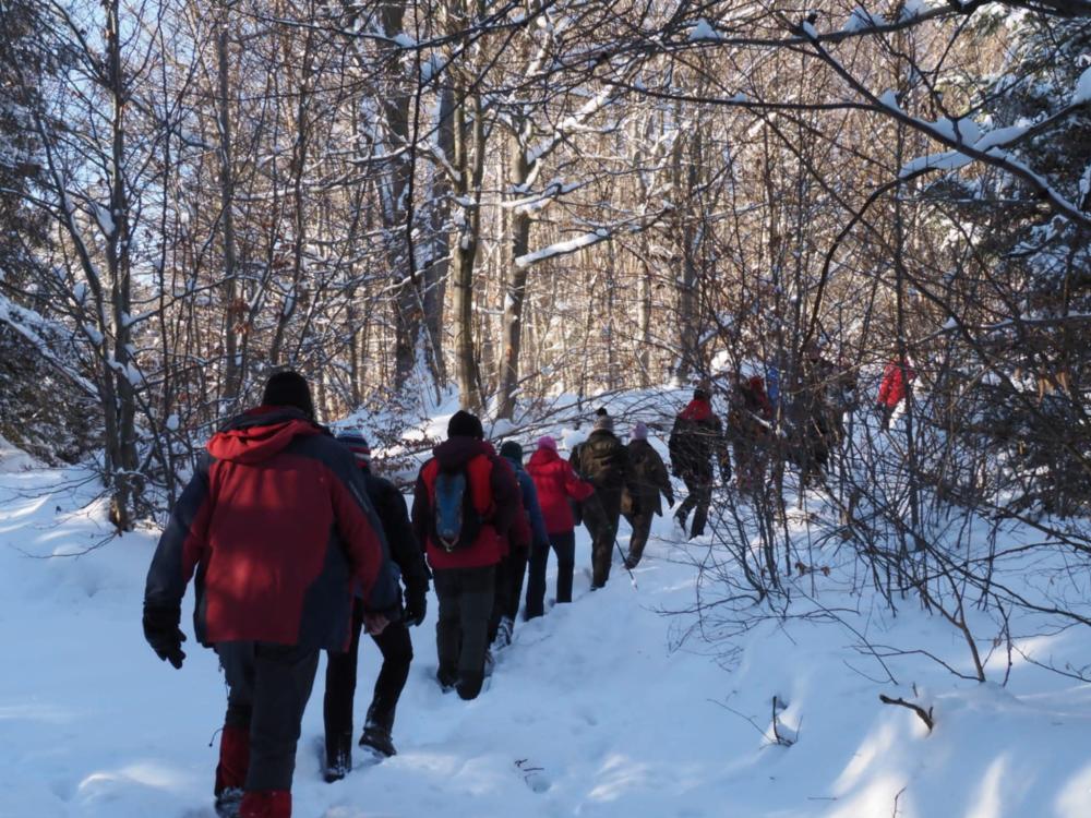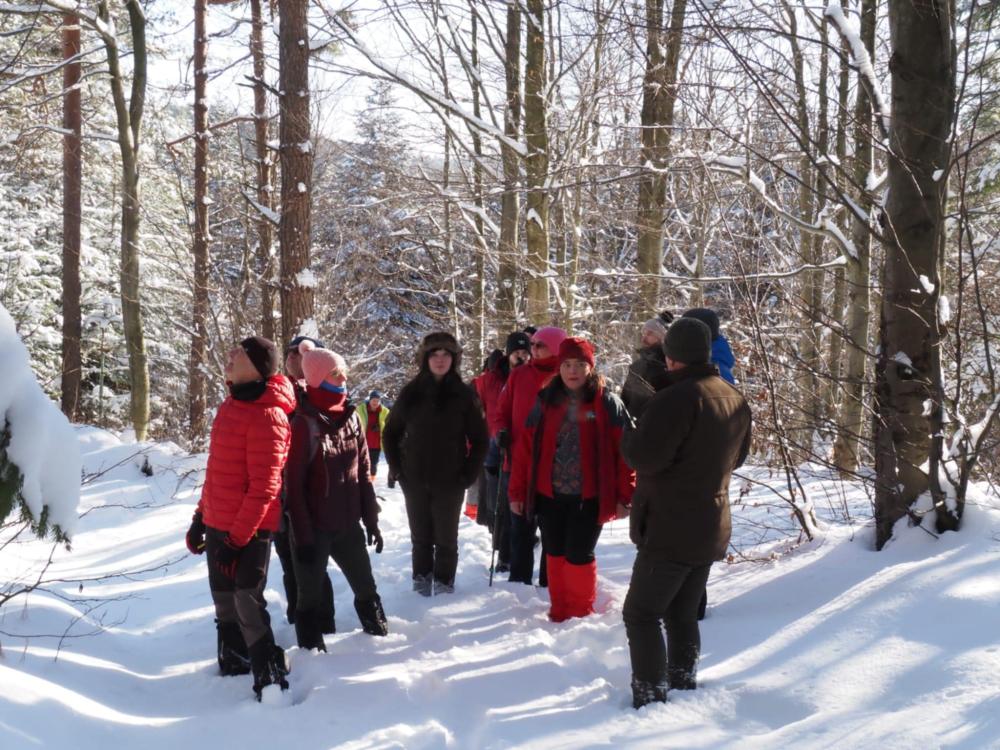 Zajęcia rozpoczęły się spacerem po ścieżce edukacyjnej „Cztery pory roku w lesie”, gdzie omówiono rytm zmian zachodzących w świecie roślin i zwierząt oraz to, jak wraz z porami roku zmienia się zakres i charakter prac leśnych. Następnie uczestnicy wyruszyli w teren, by na własne oczy zobaczyć, jak wygląda praca w lesie zimą.